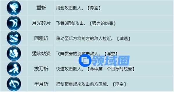 “半月斩”攻击范围大,攻击力高,非常适合用于打副本。