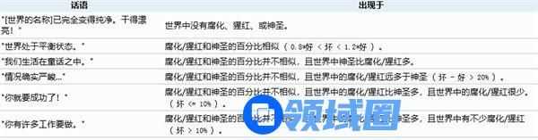 我们还可以通过树妖的报告看到世界的一个情况,腐化,猩红,神圣,这三个对世界的一个覆盖情况,她将神圣视为“好”腐化或猩红“坏”。如果腐化和猩红出现在同一个世界中,树妖会区分二者,并分别列出它们的百分比,虽然在她的最终报告中这二者都对总的“坏”有贡献。