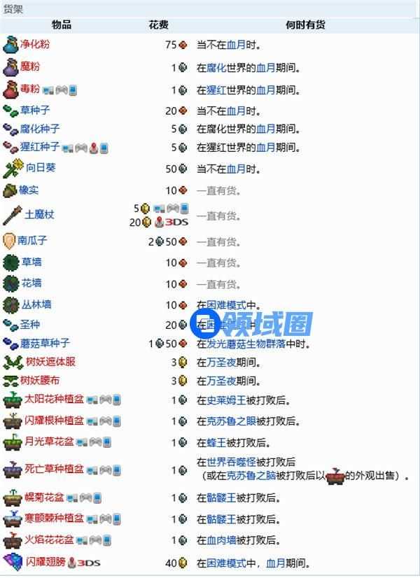 我们在不同情况下找树妖购买物品时,货物会因为世界一个情况而给不同的物品让玩家购买。
