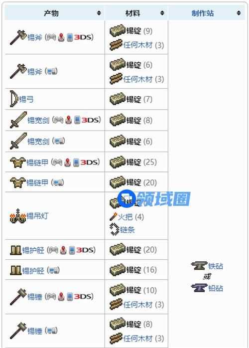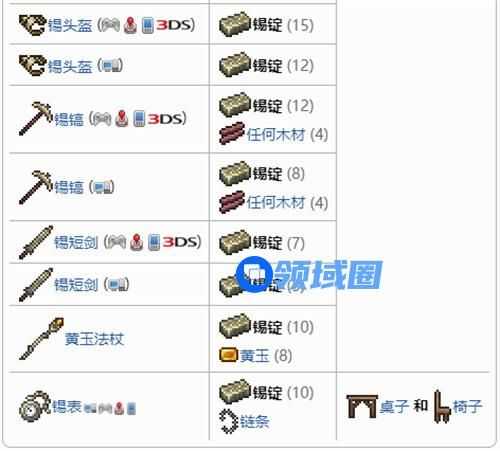 以上就是泰拉瑞亚锡锭制作物品一览的介绍了,希望对大家能有所帮助。