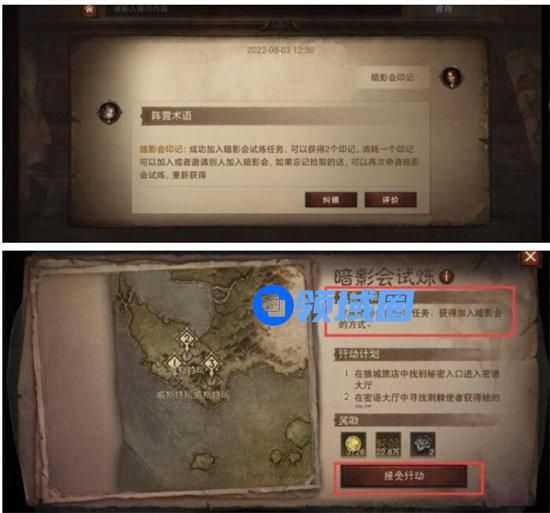 2、消耗一个印记可以加入或者邀请别人加入暗影会,如果忘记捡取的话,可以再次申请暗影会试炼重新获得。
