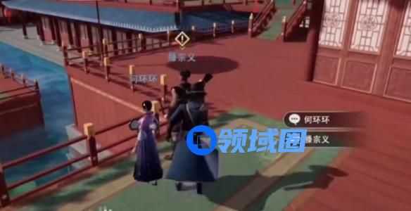 1、打开地图在刺史府前方的区域,下图位置找到NPC【滕宗义】。(在烟雨楼进门往左边走)