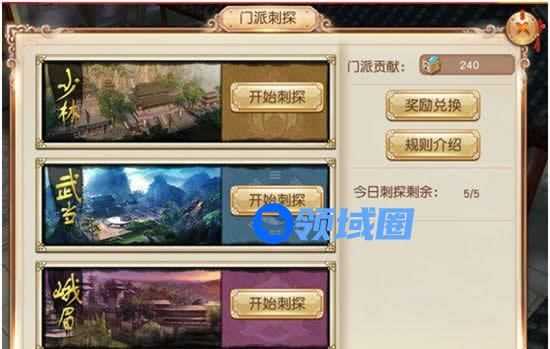 2、玩家可选择前往指定门派(非本门)进行情报刺探