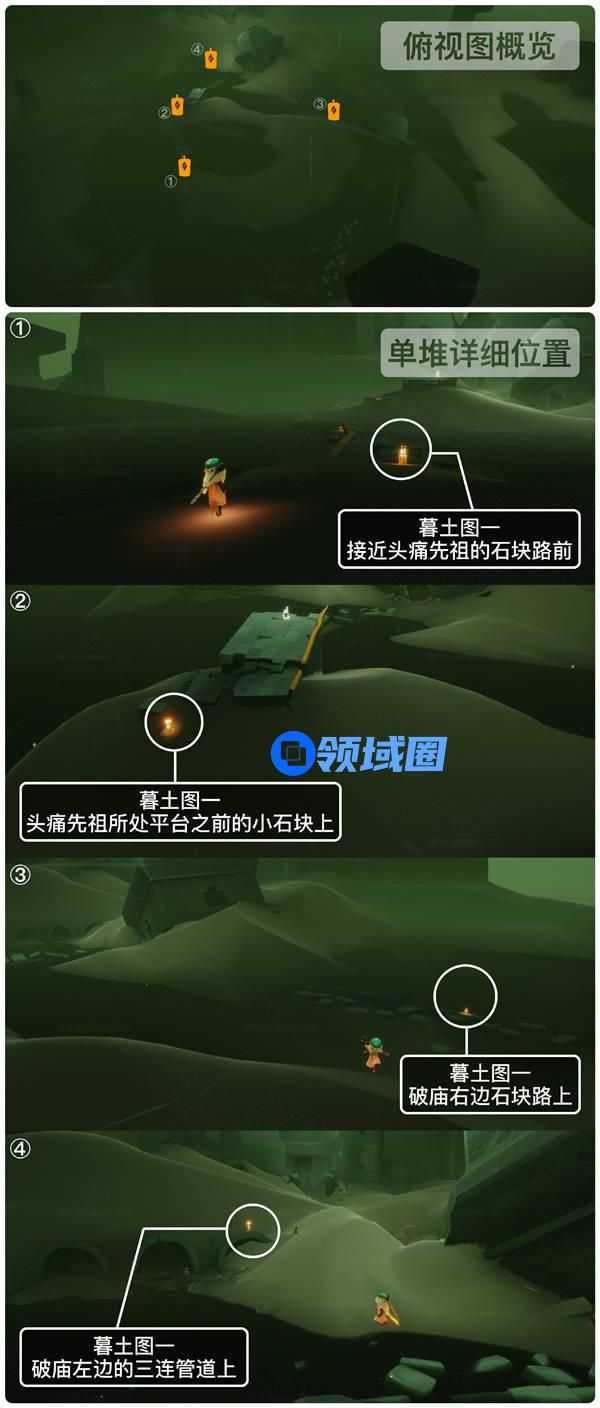 今日季节蜡烛出现在暮土地区,小伙伴们可按下图标识仔细寻找: