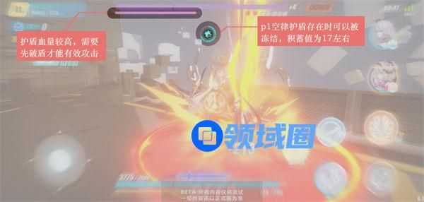 其中该boss一阶段可以被冻结,积蓄槽的积蓄值大概为17点左右,通常情况下帕朵一个大招就能将其打满。二阶段护盾存在时,该boss免疫冻结,必须要将护盾破除,才能将其打入冻结状态。实际处理时,如果温度较低,可以考虑帕朵带屠帕/泳屠来缩短出分流程。