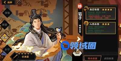 无悔华夏对待历史情节设计很用心,基本做到了还原,让玩家可在其中世界中亲身经历历史的一步步变化,并在其中运用着历史人物战斗,微操在战斗的过程中很重要,毕竟细节决定成败,这个道理大家都懂。周围的城市发展要靠玩家慢慢运营,一路上会发生许多的事情。在游戏中荀子是大汉版本里的一个名臣,他的技能一天行有常,将为玩家增加发展的时间6分钟,提前条件是每年秋季不是乱世,这个技能效果非常的有用,积少成多。技能二人性本恶,可帮助玩家维持一下前期的情况,接下来为大家介绍一下无悔华夏荀子技能一览。