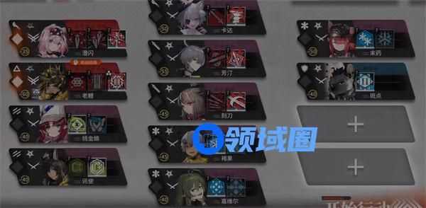 其他干员:先锋x2(桃金娘/讯使)、术师(卡达)、近卫x2(芳汀/刻刀)、元素奶(褐果)、单奶(嘉维尔/末药)、奶盾(斑点)