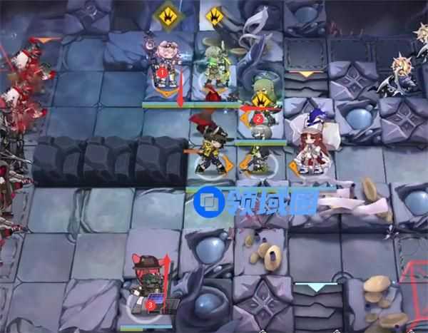 骑士一阶段的小怪打完,撤退中路的近卫,然后下面可以补个术师(向上)补一下输出。