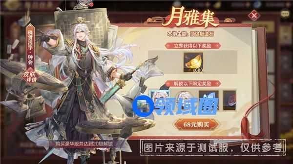 小将军可以通过每个月度完成“每日任务”获取月雅集进度,将解锁额外的“月雅集”标准奖励。另外,68元付费解锁“月雅集豪华版”后,达成指定等级可额外获得每月限定史诗级皮肤、主题奖励(本月为顶级锻造石)等资源,助力小将军闪耀三国!