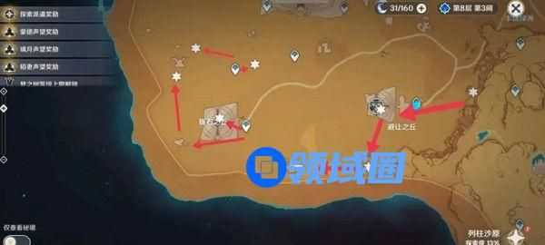 1、铄石之丘区域的草神瞳分布位置如下图所示,一共有5个;