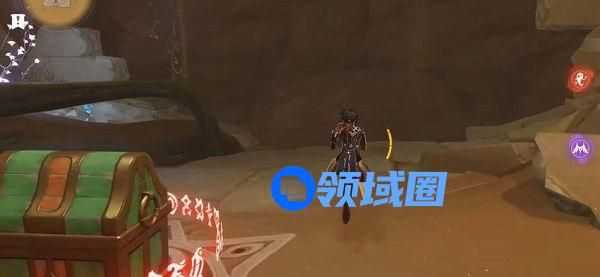 3、在这里有一个宝箱,我们往宝箱的后面走,是一个断崖,从这里跳下去,这个草神瞳就藏在下面。