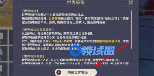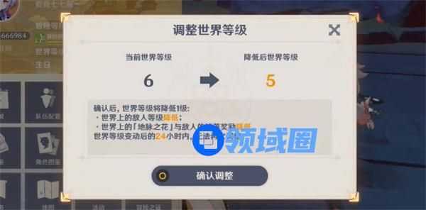 4、总而言之我们降低世界等级后,游戏内全部敌人等级随之降低。等级变更后24小时内无法再变更,一天只能调一次。降级也会使各种宝箱以及掉落奖励一同降低。