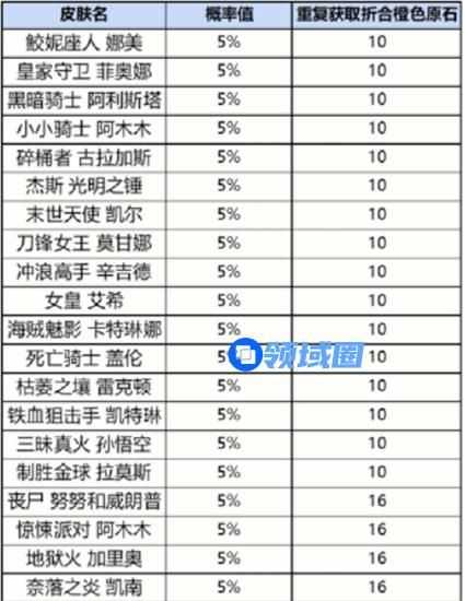 1.必得奖励概率:每次开启必定获得一定数量的橙色原石。