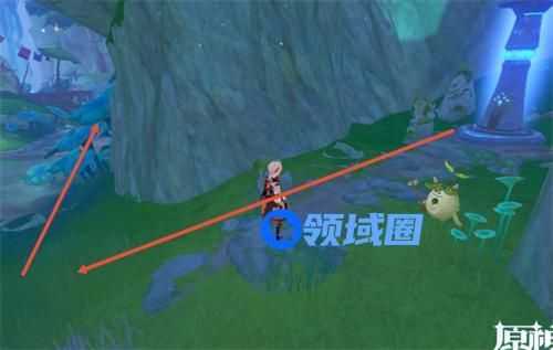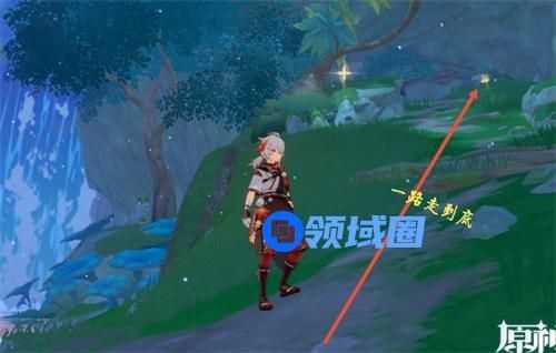 1、首先我们在红圈位置的七天神像出发,然后通过红色箭头所指的路进行移动。