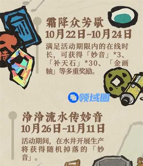 5.长寻佳音扬妙曲里,10月21日-0月27日,完成对应活动页下的积分任务可获得商、妙音、等奖励。