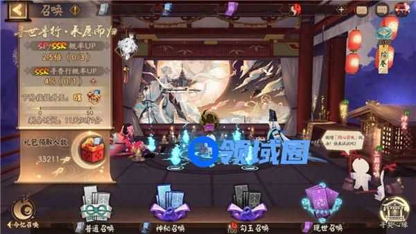※召唤期内使用神秘的符咒、勾玉、现世符咒进行召唤时,SP/SSR式神出现概率提升至原来的2.5倍!每位大人可享受3次SP/SSR概率UP的机会。