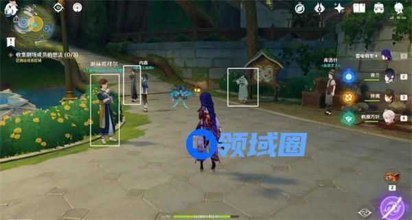 2、与图中指引的3个剧场成员对话。