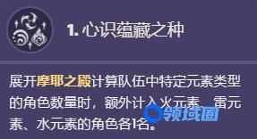 展开摩耶之殿计算队伍中特定元素类型的角色数量时,额外计入火元素、雷元素、水元素的角色各1名。