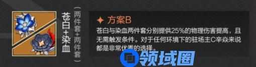 苍白与染血两件套分别提供25%的物理伤害提高,且无需触发条件。对于任何环境下的驻场主C辛焱来说都是非常优秀的选择。
