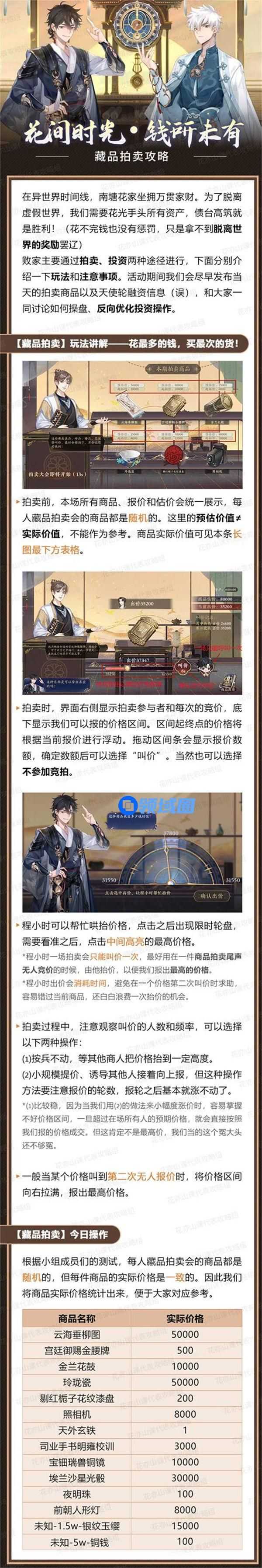 1.每个账号的拍卖会,商品都是随机的,但实际价格固定,同砚们可根据价格表,选择是否参加某一藏品拍卖。