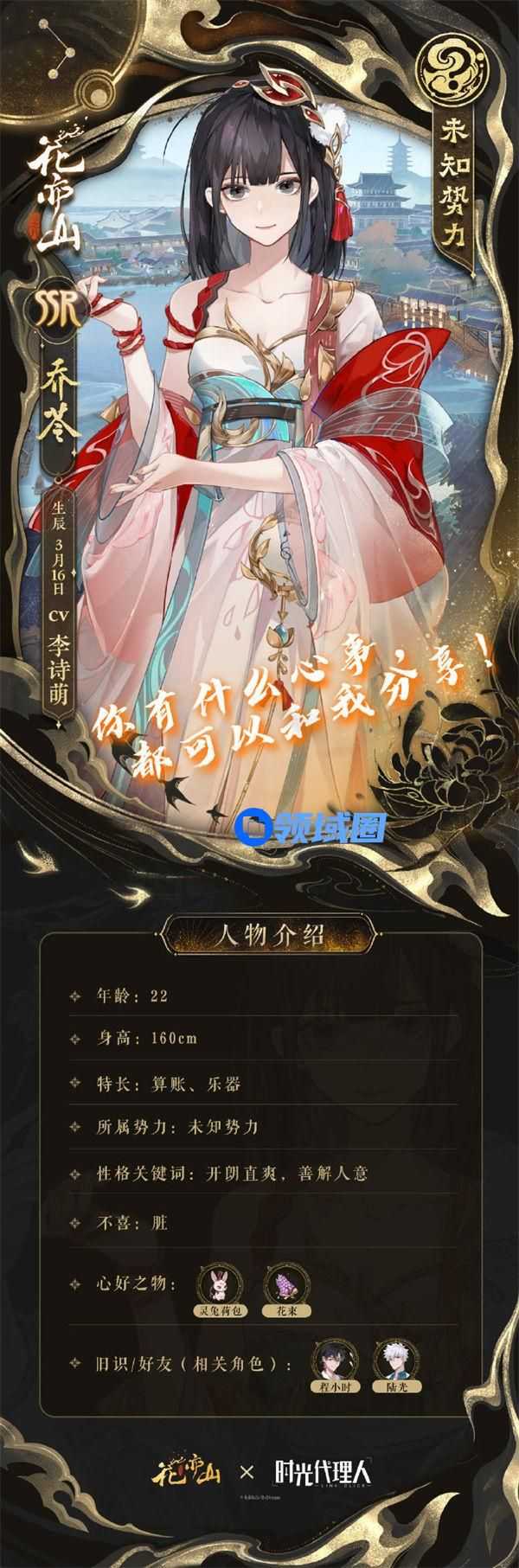 最近花亦山心之月在与热门国漫时光代理人进行了联动活动,玩家们可在游戏中见识到,几张熟悉的面孔,没错就是时光代理人动漫中出现的主人公陆光、程小时、乔苓,他们来到这个世界中将迸发出怎样的火花呢大家敬请期待吧,游戏非常注重剧情的走向,需要玩家找到最合适自己的游戏选项。游戏中乔苓是也新上线的角色之一,她是来自另一个世界的女子,性格开朗直爽,偶尔会念叨一些陌生的词句。官方在设计服饰的时候非常的用心,角色的形象好看极了,大部分玩家都很想知道她的技能怎么样,接下来为大家介绍一下花亦山心之月乔苓技能强度分析。