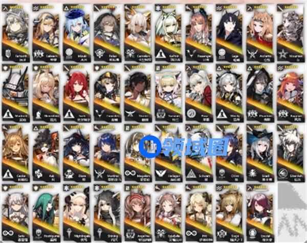 帕拉斯、山、史尔特尔、棘刺、煌(可公招获取)、赫拉格(可公招获取)、陈(可公招获取)、斯卡蒂(可公招获取)、银灰(可公招获取)