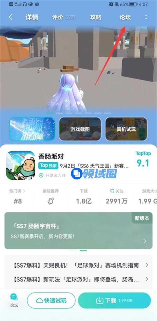 2、点击香肠派对这个游戏,点击右上角的论坛。
