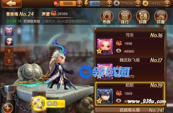 对于战力的证实,对于荣誉感的建立,那必须要在竞技场才能发挥。竞技场系统是玩家之间互相PK,展现实力的地方,玩家到达25级以后在这里可以自由挑战排名靠前的玩家。玩家会在这里看到自己的排名,并且还可以看到击败自己前面的人所获得到的奖励。
