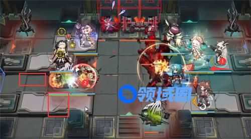 ④最后约90费,打掉左下的桩子后,如图位置撤退桃金娘和蓝毒,部署闪灵和年。