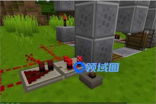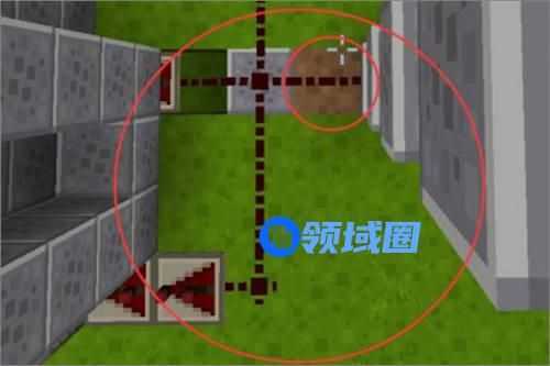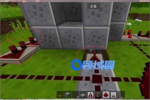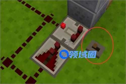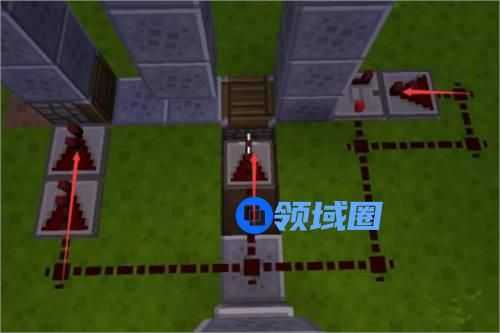 4、红石的放置,注意箭头的朝向,中间的朝下挖了1格。