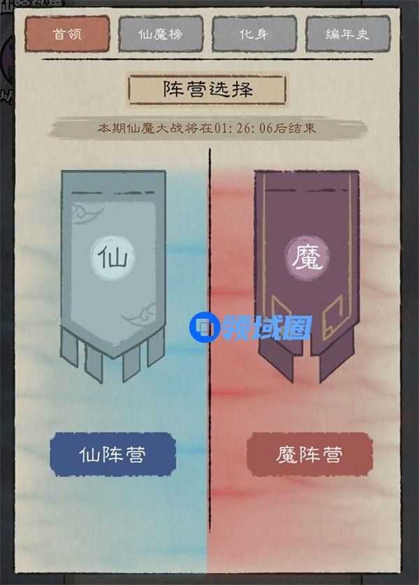 仙魔战斗三日为一期,每期将会刷新阵营选择。道友需在仙魔阵营中选择其中一方才能投入古战场的战斗中,你的选择将会影响仙魔大战的结果。