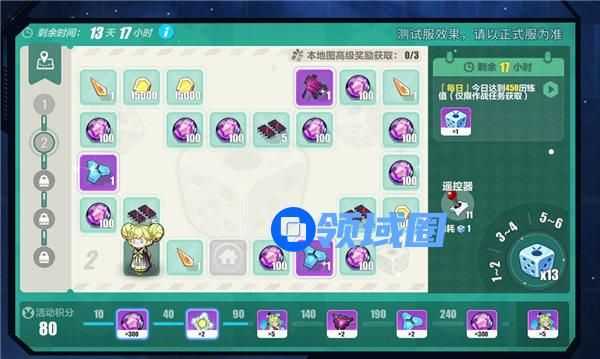除可控制爱酱棋子行进从而获取奖励外,活动下方同样设置有一条积分奖励线。舰长每消耗一个「神奇骰子」,都可获取10积分。累计获取积分即可解锁更多奖励。