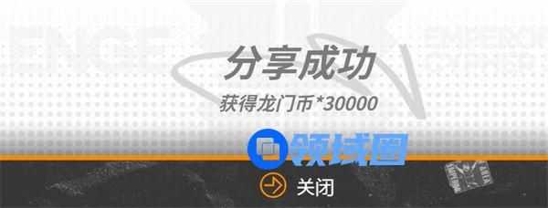 2、分享奖励:30000龙门币