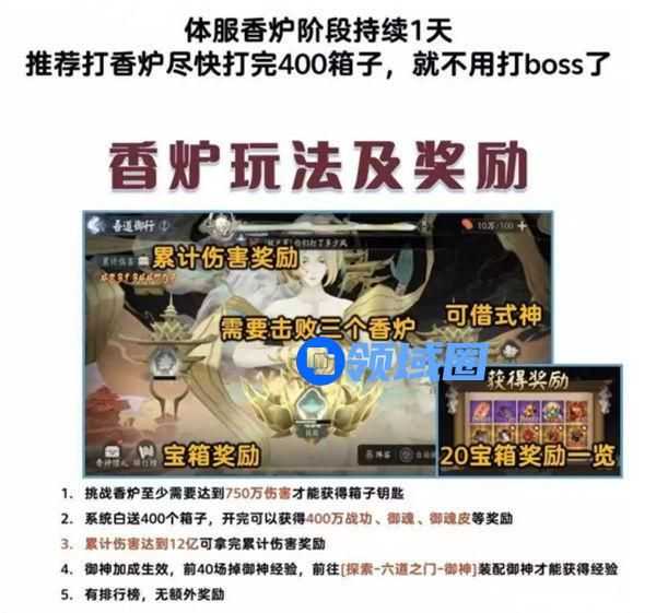 3、每局3分钟,吃六道之门御神加成(记得装备,打了最好,没打问题也不大);4000万伤害拿满本局奖励,除了中间香炉其他俩都好打