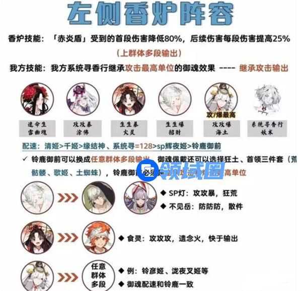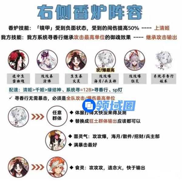右侧香炉阵容:如果你用寻那么灯狂土;不用寻用其他狂土输出的话灯狂荒即可