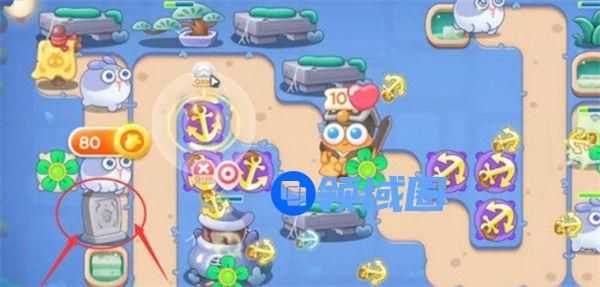 3、将第二个船锚塔升满级,两个船锚塔优先攻击上方的丹炉。