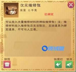 2、维修材料放入次元维修包后无法取出,且该道具为绑定道具,不可与人交易。