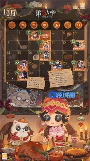 第五人格是一款人气超高的非对称竞技手游,这款游戏拥有高画质的3D游戏画面,独特的哥特式恐怖游戏画风带给玩家全新的游戏体验,游戏中玩家可以自由选择求生者或者监管者阵营来进行游戏,求生者需要相互配合解锁机关来进行逃生,监管者则需要淘汰求生者,游戏中每个阵营都有丰富的角色等你来选择,不同的角色拥有不同的技能等你来体验,刺激的生存竞技躲猫猫玩法带给玩家全新的游戏体验,游戏中有的玩家还不太了解第五人格11月有什么活动?这里小编为大家整理了相关资讯,感兴趣的话一起来看看吧。