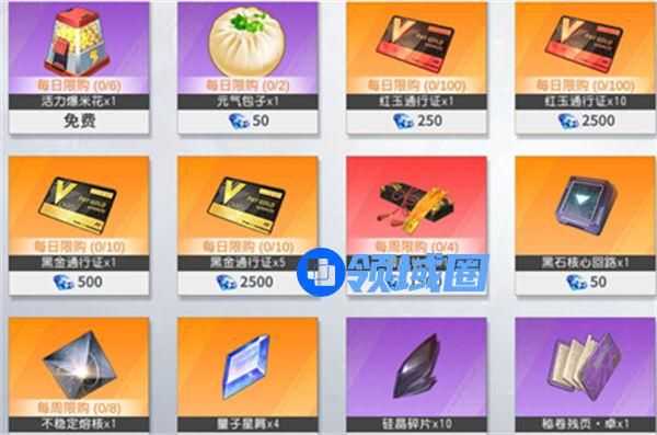 该商店的道具每日会进行刷新,刷新购买次数,夺宝券就不用多说了,肯定是每次必买的东西,其中价值最高的是核心回路、不稳定熔核以及量子星屑,这几个道具的获取难度较大,必定成为首选,其次就是爆米花体力了。