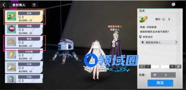首先我们前往镜都的接待处,径直走到尽头右转就可以看到闻香夫人,在这里我们可以购买到黄豆和玉米,大家节约购买,因为目前镜元币还是很稀缺的。