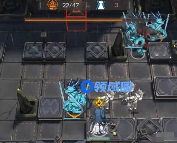 如图所示位置在右上角部署小龙(向上)挡住狼之主,然后合成大龙。