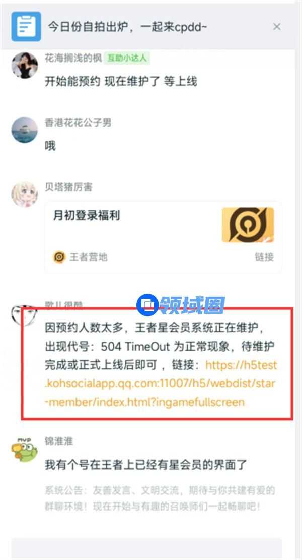 7、开启之后目前只能看等级(因预约人数太多,王者星会员系统正在维护出现代号: 504 TimeOut为正常现象)