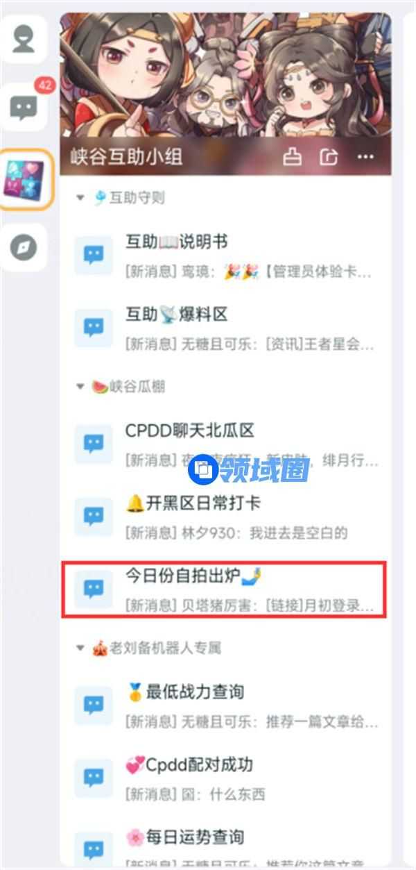 4、加入峡谷互助小组,然后点击【今日份自拍出炉】