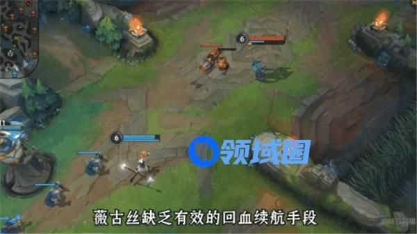 薇古丝缺乏有效的回血续航手段,并且其技能的弹道速度很慢,很难直接命中远距离的敌人。