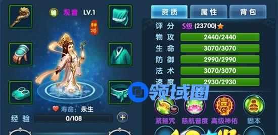 从属性来说,观音很标准,法术高,防御低,速度快。的确是个标准的奶妈型角色。