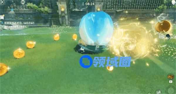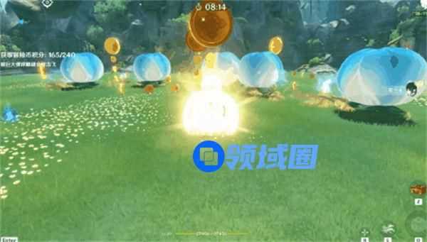 2.利用夜兰的元素战技快速移动,躲避「巨大弹球」,拾取冒险币获得积分。