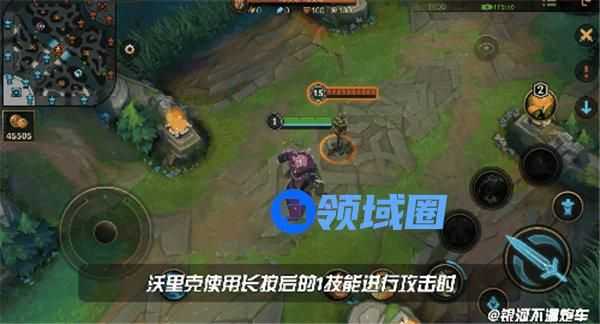 沃里克使用长按后的Q(1)技能进行攻击时,会跳到目标身后,并跟随目标移动。