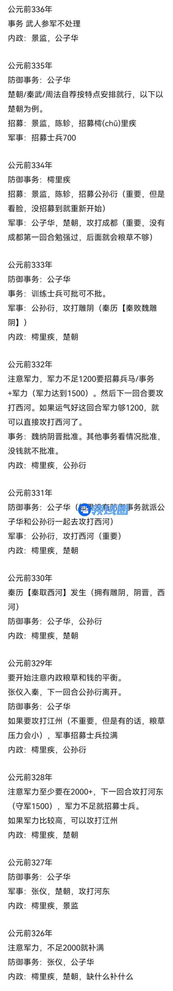 3.前期内政基本重粮,内务也以粮食为主。大概公元前329年开始要注意金钱和粮食的平衡,快到章节结束的时间点,很容易gg。