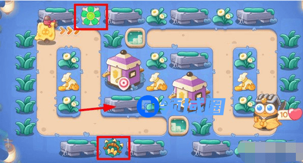 2、我们打掉在左上放个风扇塔,多重箭拆附近道具,拆除顺序如图所示。