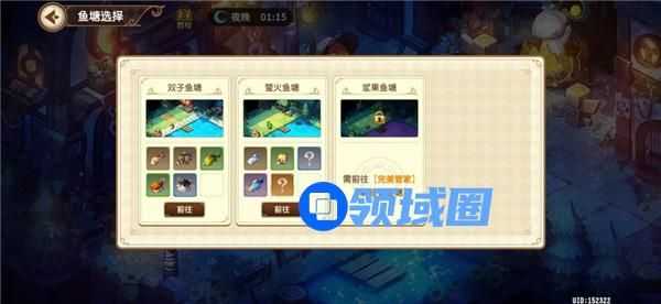 2.目前游戏共有三个池塘,除了第一个在城镇的双子鱼塘外,另外两个鱼塘需要到秘宝调查里进行解锁,解锁之后下次钓鱼就不用再去秘宝调查这么麻烦了,可以直接在城镇里进行鱼塘选择;